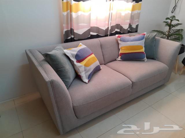 للبيع كنبتين وستارة و8 تلبيسات مخدات من إيكيا