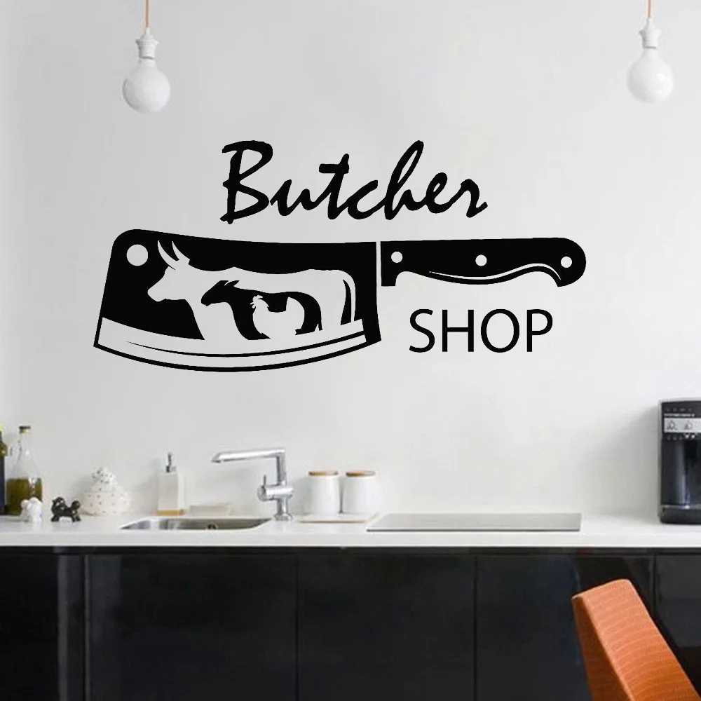 ملصق حائط من الفينيل w500 ملصق جزار سكين ثور دجاج غنم لحم مطبخ أمريكا الشمالية ديكور منزلي فن wall stickers aliexpress