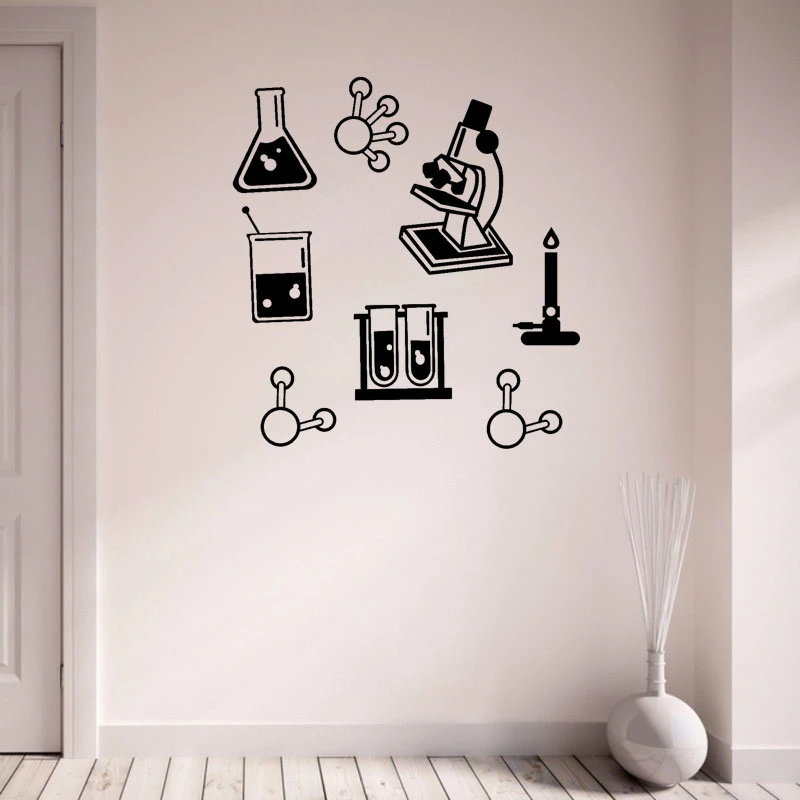 science bundle vinyl wall stickers chemistry classroom waterproof decoration microscope wall art decals diy teacher sticker s562 vinyl wall stickers wall stickerteacher stickers aliexpress